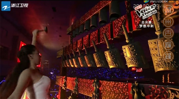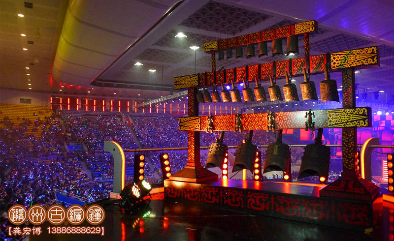 古編鐘公司受節(jié)目組委托將一套中型青銅編鐘運達活動現(xiàn)場,參加好聲音北京總決賽的開場部分,晚會以敲擊中國2400多年前的編鐘之聲開場,寓意中國文化底蘊豐厚,好聲音自古傳今,節(jié)目由此發(fā)掘出中國眾多好聲音學員,開創(chuàng)新一代造星之路。