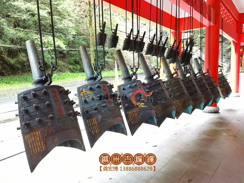 2023年7月,隨州古編鐘公司制作的10件大型曾侯乙甬鐘及一組旋律編鐘,在堯治河旅游景區(qū)完成安裝工作。當(dāng)悠悠鐘聲回蕩山谷時(shí),它那古樸渾厚的樂音,激蕩起人民對(duì)黨的赤誠忠心,又仿佛在訴說革命先輩對(duì)未來的期望。這次將編鐘作為文化的載體,展現(xiàn)了中華歷史的厚重和新時(shí)代征程的拓印,這份紀(jì)念豐富了景區(qū)的文化內(nèi)涵,映襯了自然景色,讓游客在旅途中感受山水古樂的酣暢淋漓。